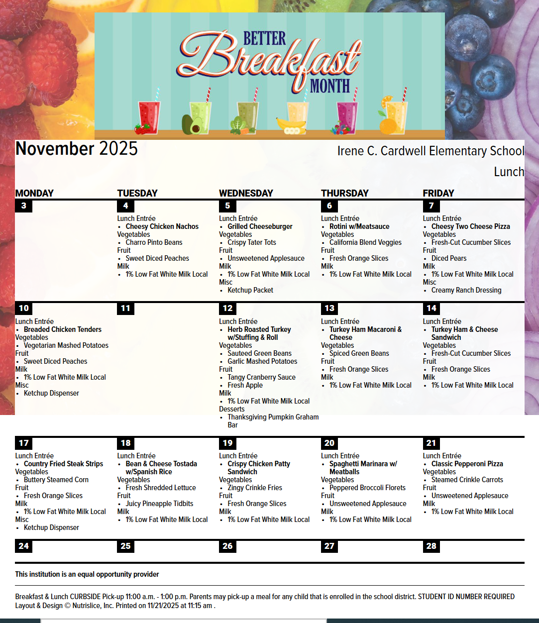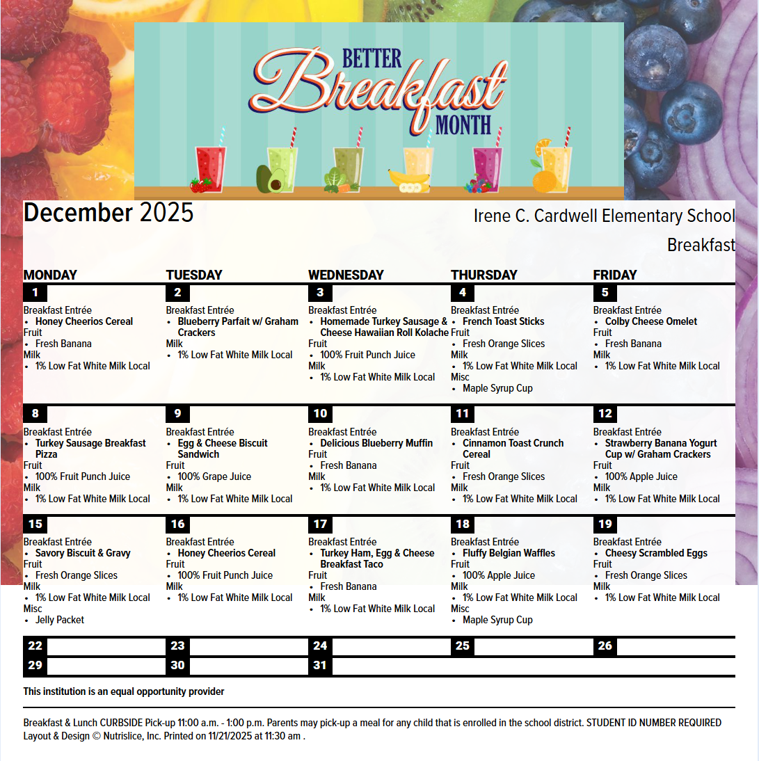 December Breakfast Menu